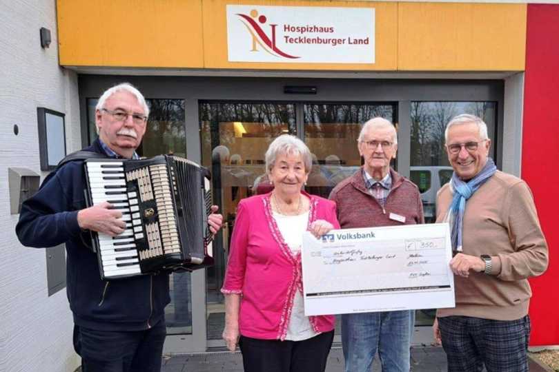 In der Weihnachtszeit sammelte der Awo-Singkreis bei Proben und festlichen Adventsfeiern eine Spende von 350 Euro. Diese Summe war für das Hospizhaus Tecklenburger Land bestimmt. Den symbolischen Spendenscheck überreichten Marianne Hoppe, Hans-Georg Becker und der Leiter des Singkreises, Hans Happe, an den Geschäftsführer Alois Beulting.